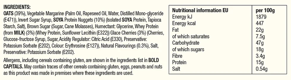 Med sin kombination av komplexa kolhydrater från havre och hög proteinhalt, är BIG Protein Flapjack ett smart val för dig som vill ha ett näringsrikt och gott mellanmål. Proteinet bidrar till att bygga upp och återhämta musklerna efter fysisk aktivitet.