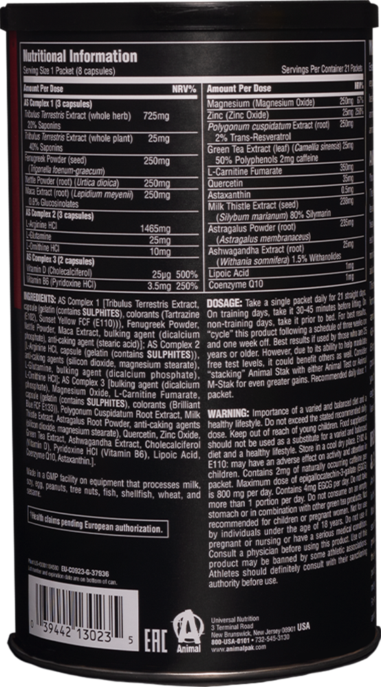 Animal Stak är en kraftfull formel framtagen för seriösa styrkeidrottare och bodybuilders som vill ta sin prestation till nästa nivå. Tillskottet innehåller fem synergistiska komplex som stöder normala nivåer av testosteron och tillväxthormon, samt bidrar till energiförsörjningen i musklerna.