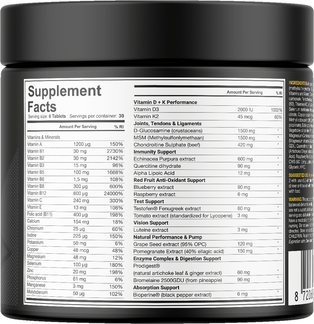 Dedicated ALPHA TRIAD™ är det ultimata dagliga kosttillskottet för seriösa atleter. Denna avancerade formula kombinerar funktionaliteten från hela 10 olika produkter i ett enda kraftfullt tillskott – långt mer än en vanlig multivitamin.