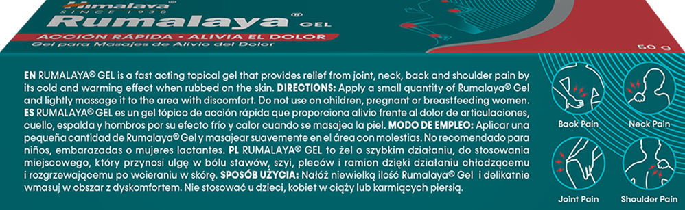 Himalaya Rumalaya Gel är en örtbaserad gel för utvärtes bruk, utvecklad för snabb och smidig applicering direkt på det önskade området. Den lättabsorberade formulan gör att gelen snabbt tränger in i huden utan att kännas kladdig, vilket gör den idealisk för daglig användning.