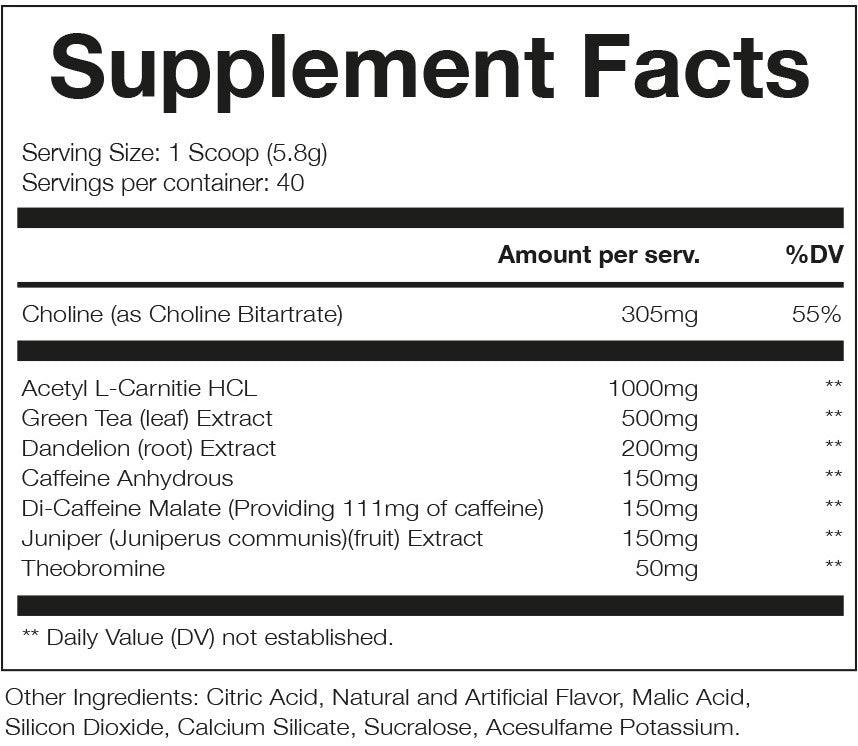 Redcon1 Double Tap är ett kraftfullt kosttillskott utvecklat för dig som har fullt fokus på kost och träning. Varje portion innehåller 1000 mg acetyl L-karnitin HCl och 150 mg koffein – en kombination som ger både energi och stöd vid viktkontroll. Dessutom ingår kolinbitartrat, som bidrar till normal fettmetabolism, samt extrakt från grönt te och maskrosrot – två välkända ingredienser inom prestations- och hälsotillskott.