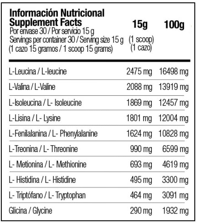 Innehåller över 1800 mg L-Isoleucin och L-Lysin
